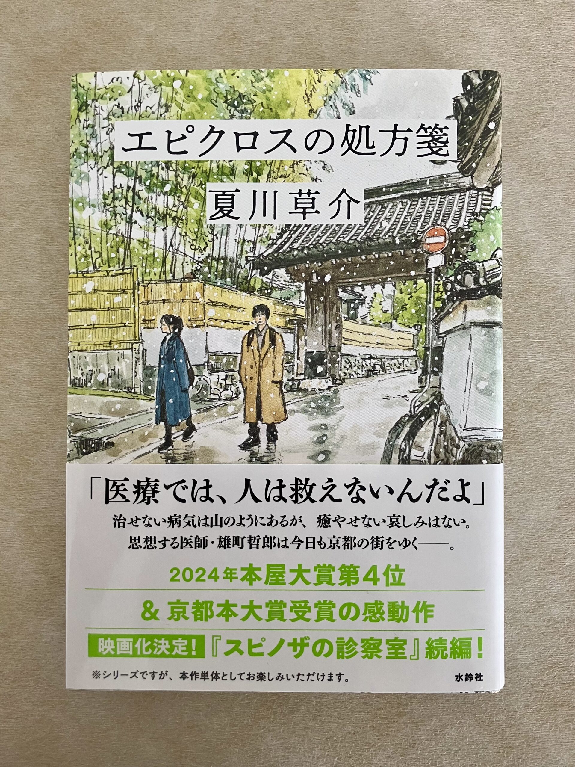 今日ご紹介する『エピクロスの処方箋』は、『神様のカルテ』とは別の医療小説シリーズの最新刊です。映画化が決まった話題作『スピノザの診察室』の続編です。