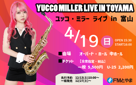 【チケット先行予約はこちら】4/19開催 ユッコ・ミラーライブin富山 YUCCO MILLER LIVE IN TOYAMA