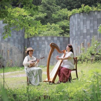 ボーカルとアイリッシュハープのユニット「梅花藻(ばいかも)」の音楽とともにお楽しみください。